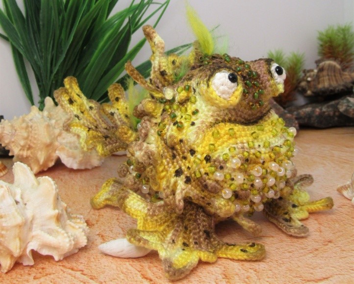 Я участвовала во многих онлайнах и конечно у авторов многому научилась. Желание придумать свое описание появилось почти сразу же. Общие принципы мне были уже давно понятны. Стала что-то изменять, добавлять. С фантазией у меня никогда не было проблем, наоборот, пока продумываю одну игрушку, уже думаю о следующей, прямо беда, из-за этого у меня много недовязов. Вообще создавать новый образ, продумывать как связать какие – то сложные моменты – для меня это просто кайф. Работа начинается когда нужно все это записать, отфотографировать, отредактировать, вот это уже сложно.