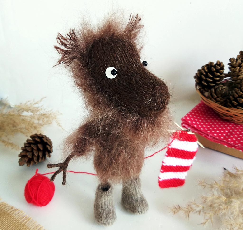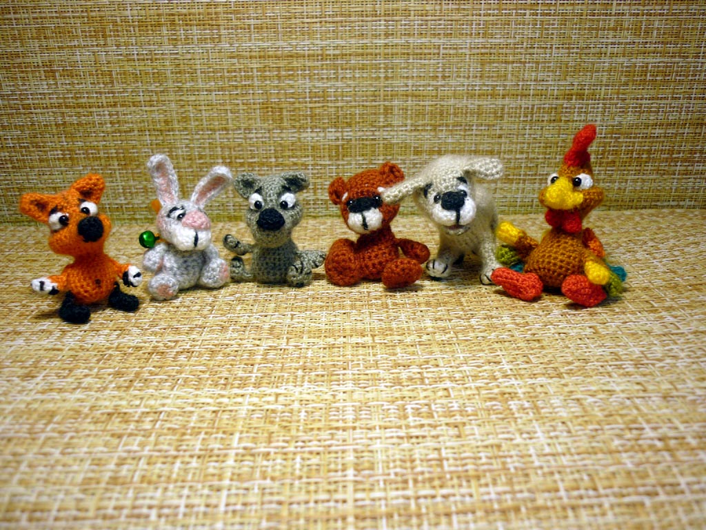 Связаны игрушки из пряжи полушерсть в две нити, это бобинная пряжа для вязальных машин, крючком Кловер №0,6.
