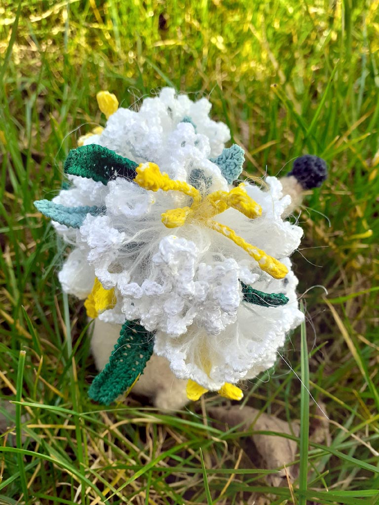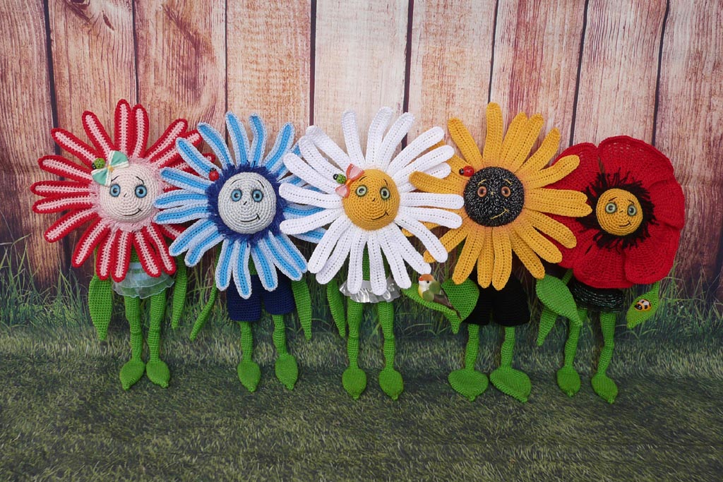 Из он-лайна "Живые цветы". Связаны по МК Александры Simba. Пряжа Сосо 240м/50г. Рост 25-28 см.
