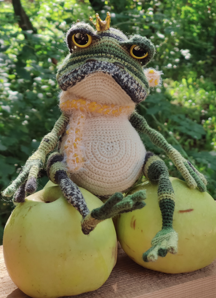 И вот еще одна лягушка, больше как демонстрация того, как делать не надо и лучше выбирать указанные нитки. Эта лягушенция вымотала мне все нервы и все равно не получилась такой, как я хотела и задумывала. В общем, примите к сведению, что из фактуры типа любой меховушки у вас получится вот такое странное существо)