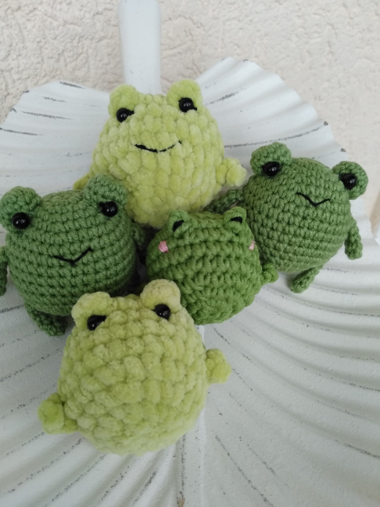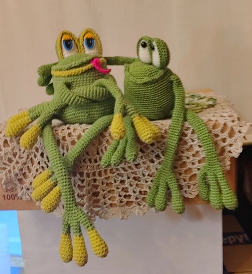 когда то давно, году так в 2020 вязала лягушек на заказ, уехали на дальний восток