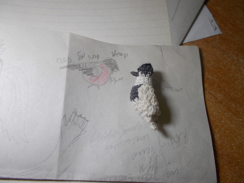 Замечательный конкурс! Мне интересно было, спасибо организаторам за идею. Уважаемые форумчанки, первый-то лось - мой, имя ему придумал сын. А связан он вот по этому моему "рисунку". Птичка на листе - пробник размеров.