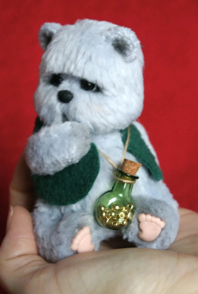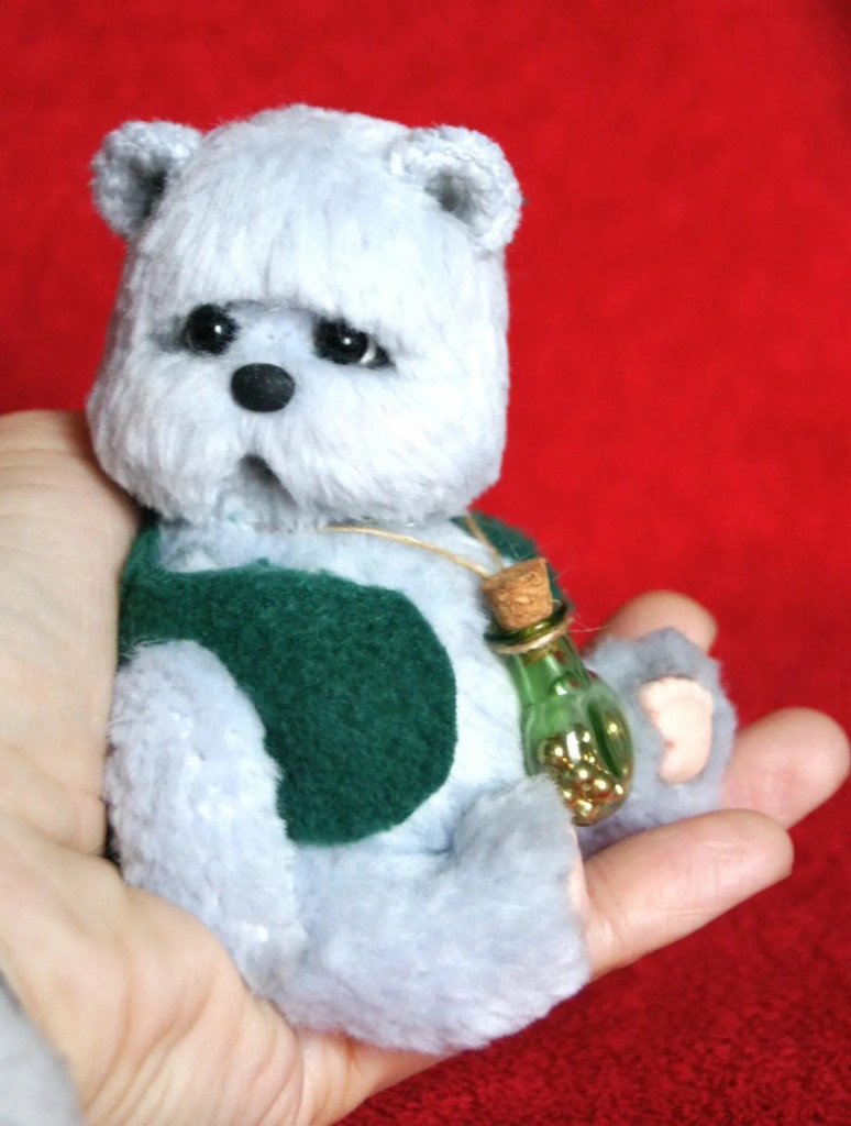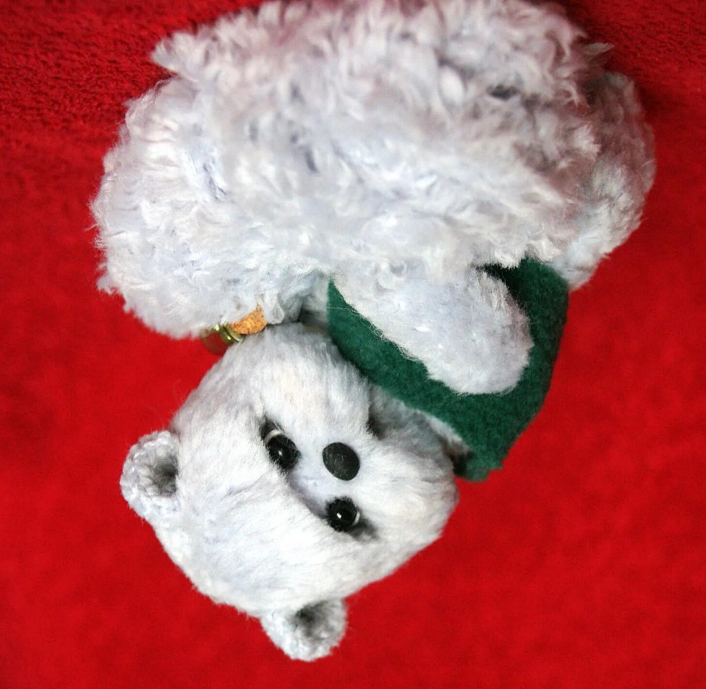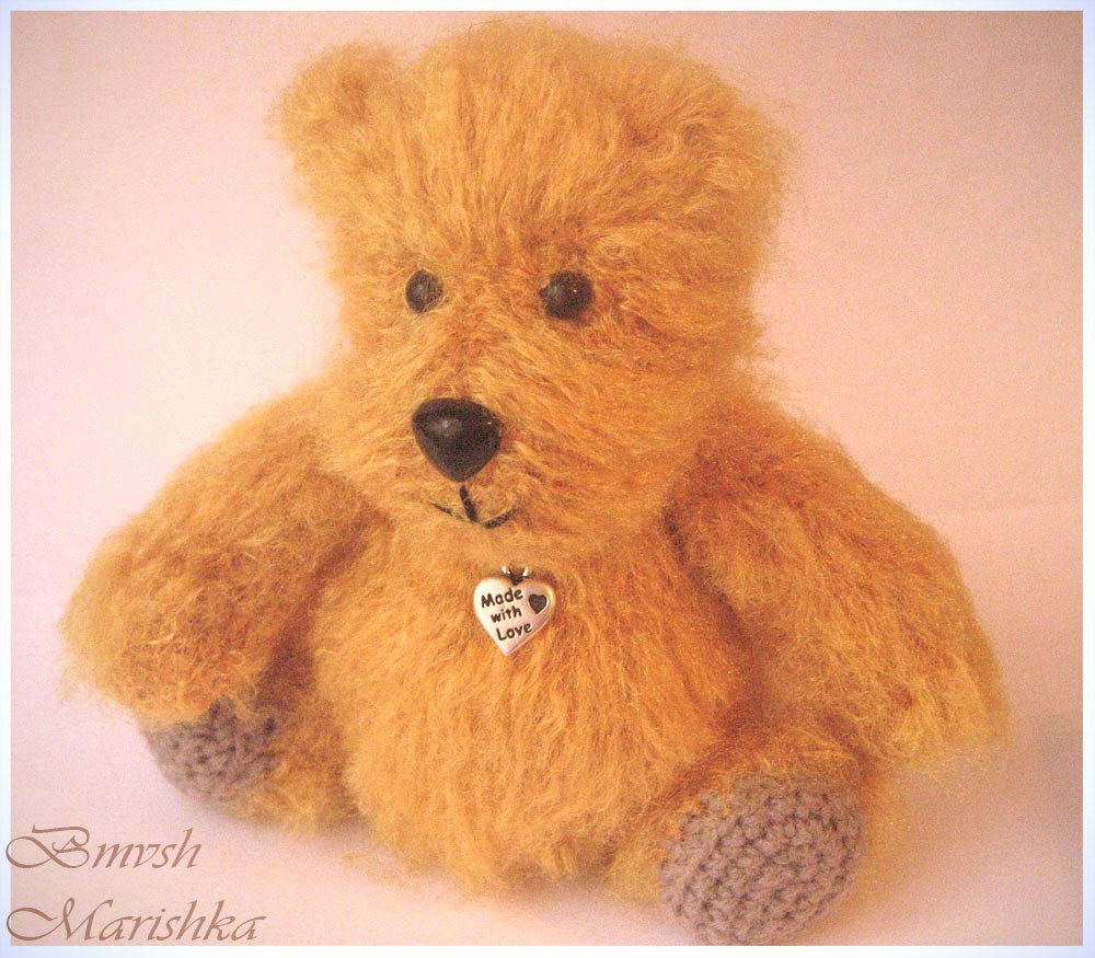 Кевин. Мостиком 12 см, связан из английской меховушки (похожа на минк ). Шплинтовое крепление конечностей, носик и пяточки из поилмерки. Утяжелен металлическим гранулятом.