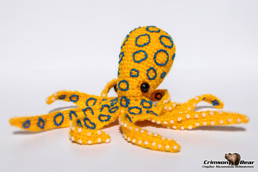 Размер готовой игрушки: длина головы - 7 см., длина щупалец - 7 см.
