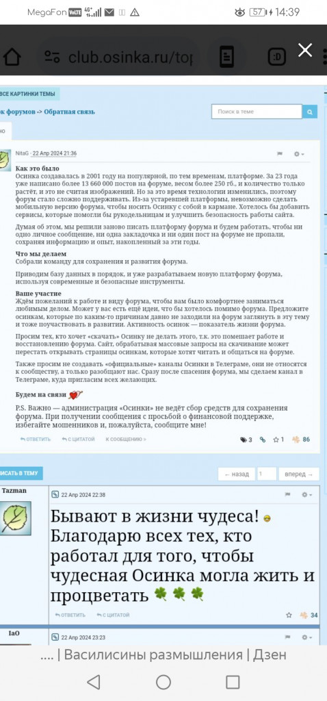 В общем поискала сейчас информацию,похоже действительно она совсем умерлаOksana1975 писал(а): ↑09 янв 2026 18:51 Девушки, ни кто не знает, осинка совсем умерла? И куда может они переехали? Дааненько не заходила, а тут вообще нету.