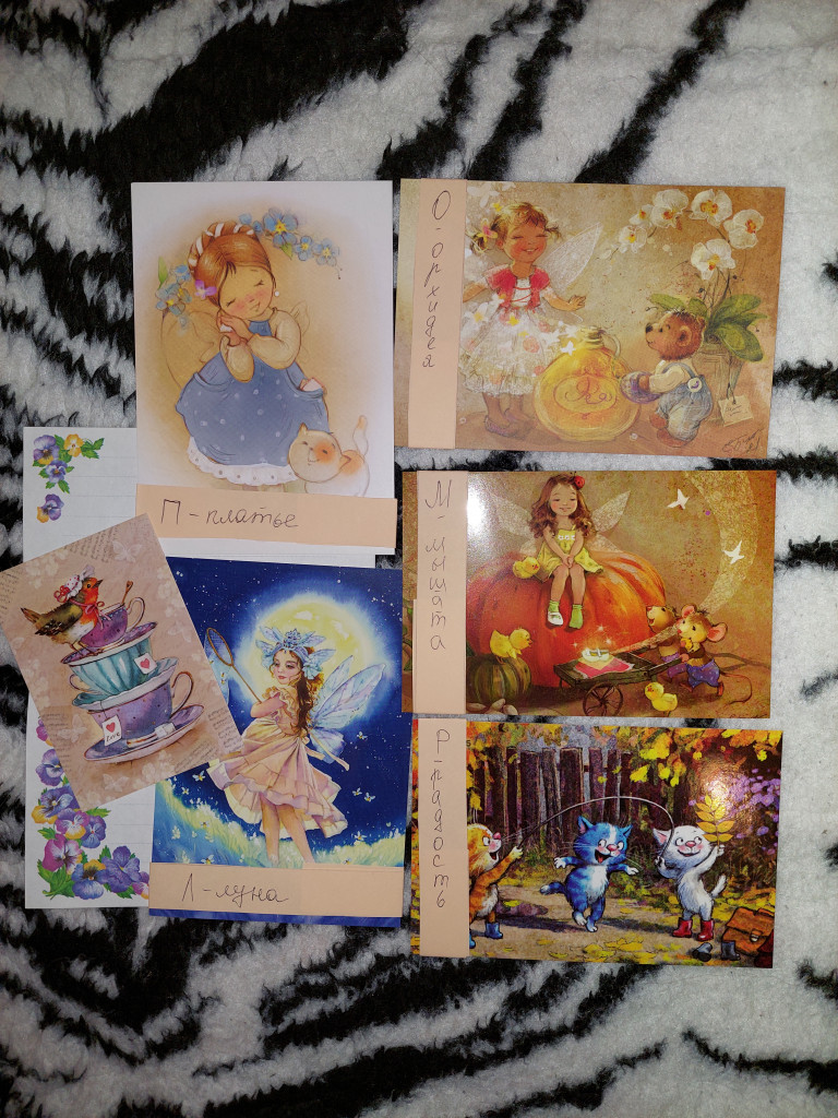 Второй конверт от Жанны @Анюта8. В нём тоже открытки по игре "Сюрприз в конверте" и красивый листочек для письма, мини открытка в мою коллекцию.