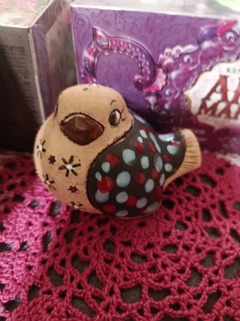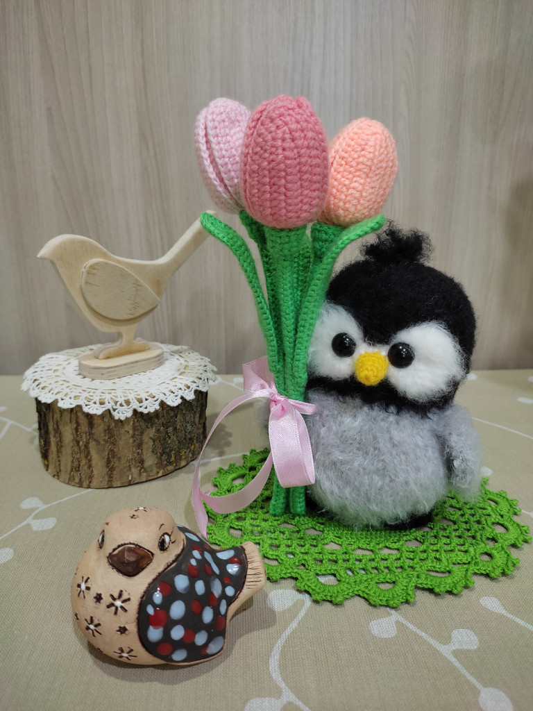 А главный герой настоящий кавалер, пришел с цветами, очень милый и тискательный. Уже стоит на полочке) да ещё и с целой птичьей семьёй, чего стоит деревянная птичка сделанная Наташиным сыном. Очень аккуратно)))