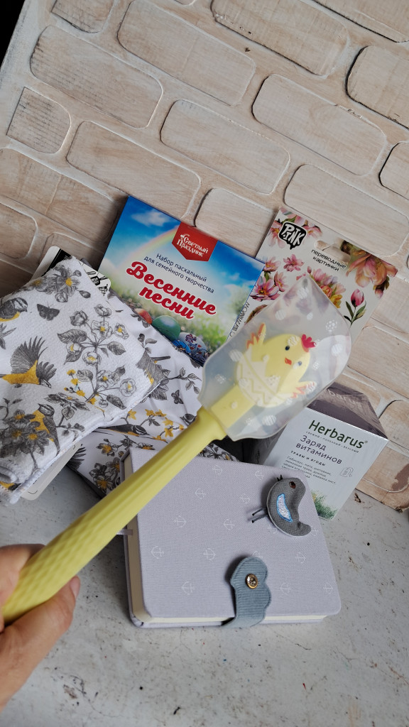 Море сладостей и вкуснойстей. Всякие нужные мелочи, и пасхальные штучки. Отдельное, спасибо за краситель для яиц и наклейки, я и не думала, что пасха так близко и пора готовиться. И "хомяк" мой ликует, перышки, бусинки, а особенно бутылочки понравились. И пряжа, тоже, огонь. И восхитительный главный герой. Прям вау, коготки. глазки и такой маленький. Обожаю малышей. @Abby Огромное спасибо. Я в восторге.