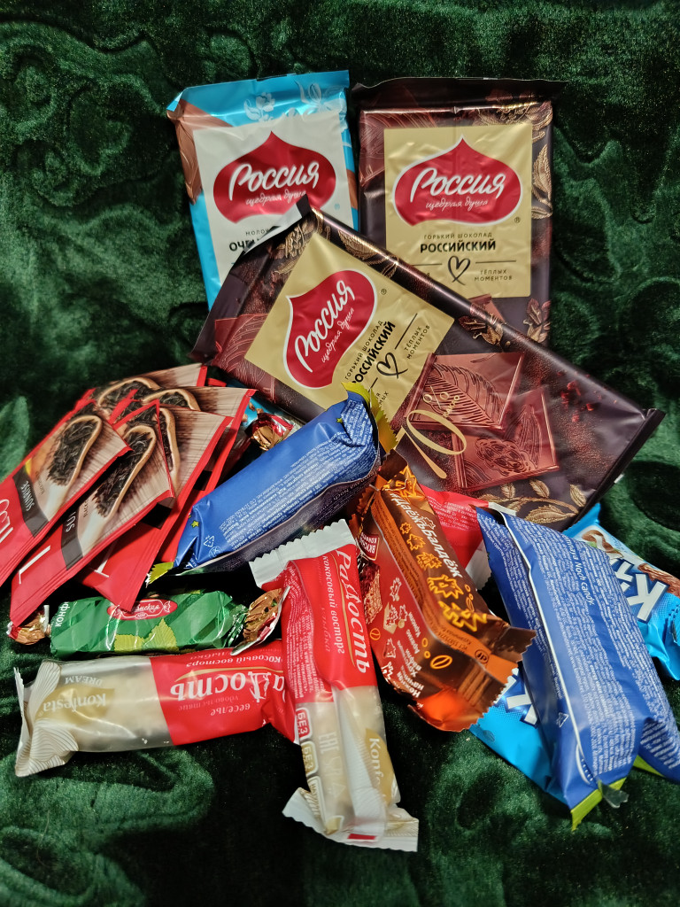 Посмотрите, сколько всего прислала моя феечка: чай, козинаки, мармелад, Сочинские сладости, шоколад, как я поняла, ручной работы и ещё что-то с иероглифами из дружественной страны.