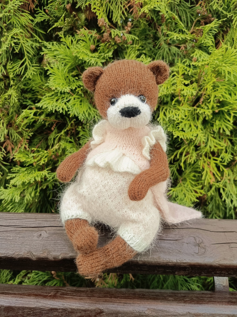 Доброго времени суток всем форумчанам) меня зовут Ольга, и вот мой мишка, связанный для дочки одногрупницы)