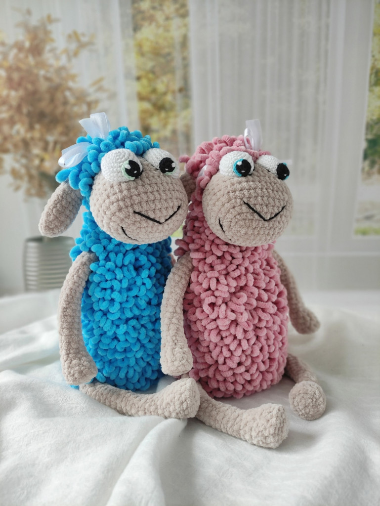 Овечка с конкурса "На фига козе баян" 23 см ростиком. Белая пряжа - мерсеризованный хлопок, Розовая - буклированная.