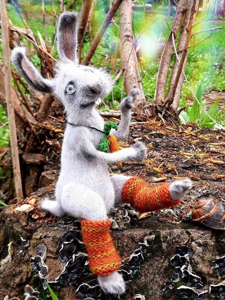 Этого зайчика связал мой сын, а я пока только в процессе. Немного не в тему, темы "зайцы" не нашла