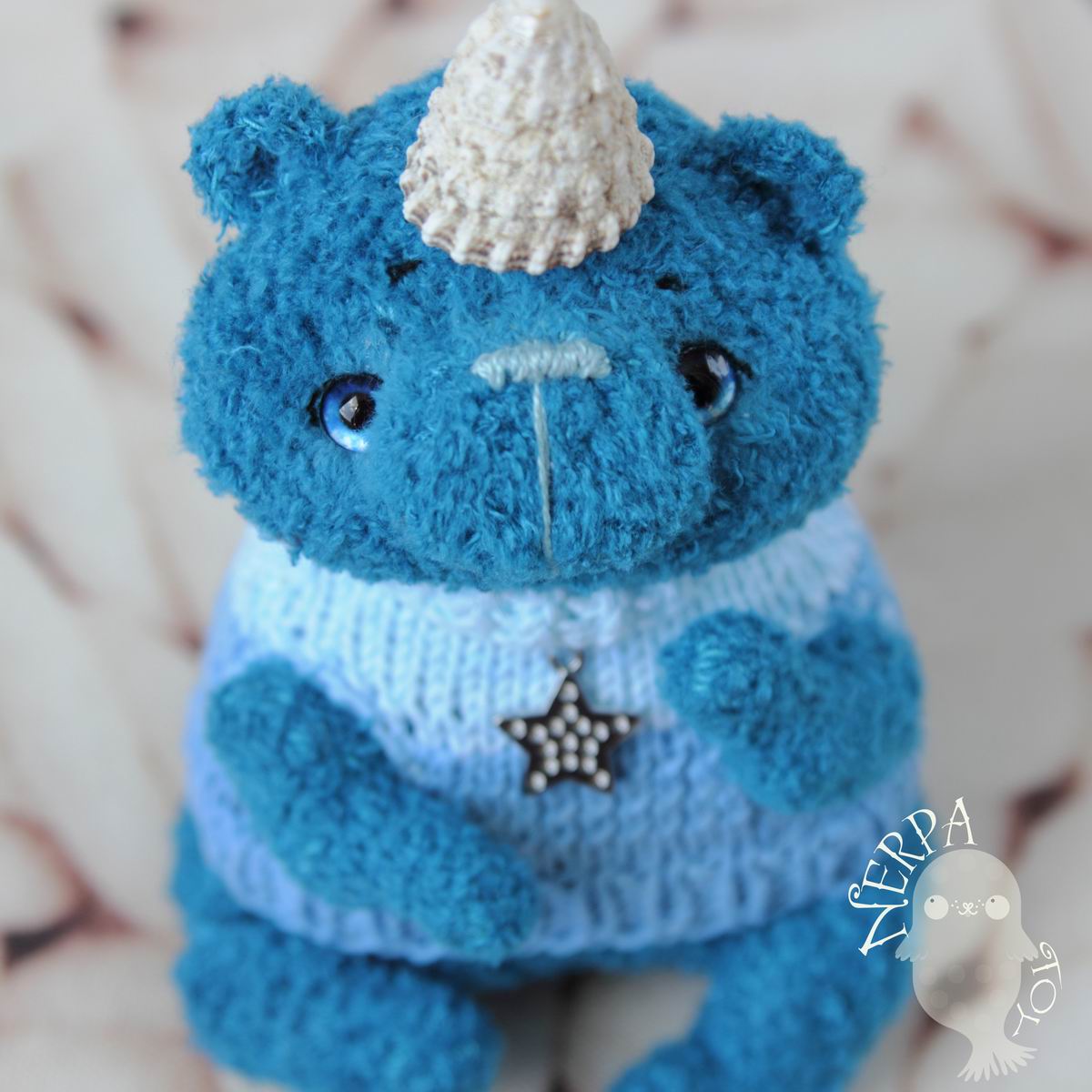 маленький, всего 7 см, связан из тонкой бобинки китайской + кидмохер ализе.