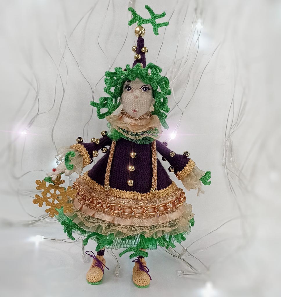 Связана ёлка-гномка пряжей ALIZE forever. Крючок 0,8 от Gamma.