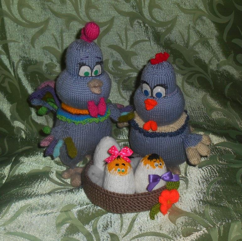 Птицы вязались различные. Это и петрушки, и цыплята, и совы (таких много связала) и самые разные.