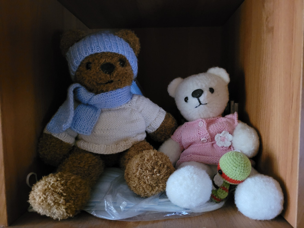 Заяц в красном комбезе связан из ADELIA, в желтом сарафанчике - из детской Baby Smiles
