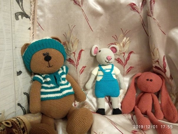 Мишка ,которого очень люблю (из связанных мной), по МК Елены Ермак, получился смешным ирландским парнем.Леночка- один из самых любимых авторов, у неё подробные и понятные для всех (даже для таких, как я) МК, добрые и милые игрушки.