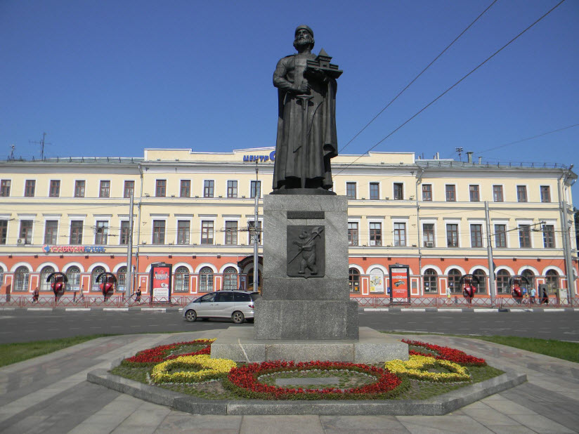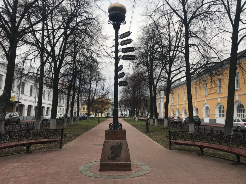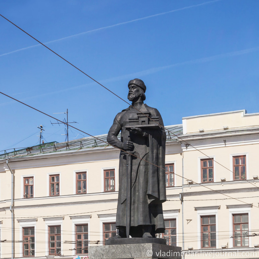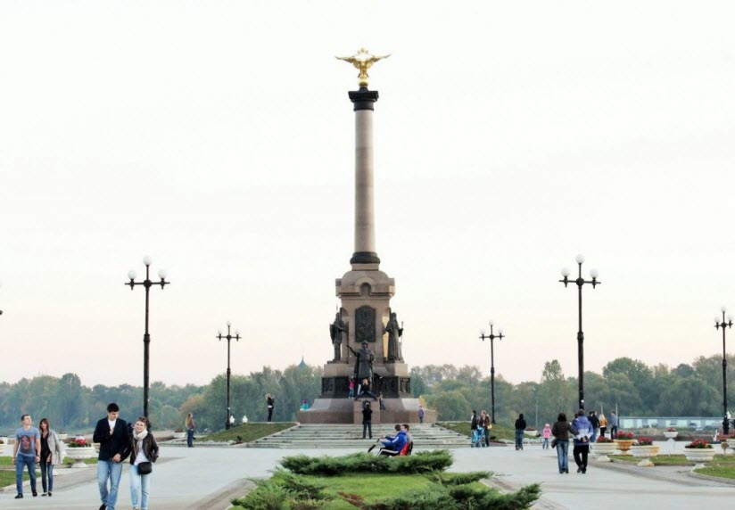 (фото: 1-2 памятник Ярославу Мудрому, который расположен в центре Ярославля на Богоявленской площади; 3-4 Богоявленская площадь) К знаменательной дате – 1000-летию со дня основания города (а было это с 2010году), в живописном парке на Стрелке был открыт памятный монумент, ставший одним из символов Ярославля. Его доминантой является, установленная на постамент колонна, с покрытой позолотой фигурой распростершего крылья двуглавого орла, на вершине.