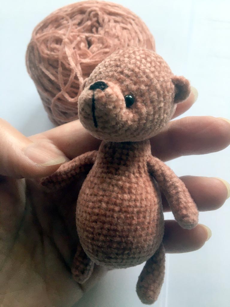 Нашла ещё одного мишку. К сожалению, автора не помню, возможно это был перевод. Помню, что в описании головы была ошибка, что-то сама "мудрила" там. Связан был для обмена. Описание называлось "Спящий мишка".