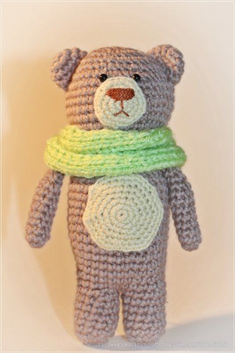Мишка ,которого очень люблю (из связанных мной), по МК Елены Ермак, получился смешным ирландским парнем.Леночка- один из самых любимых авторов, у неё подробные и понятные для всех (даже для таких, как я) МК, добрые и милые игрушки.