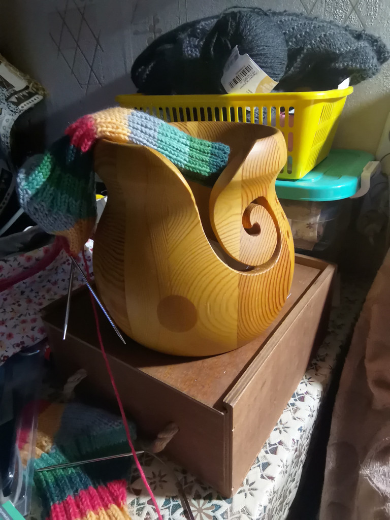 Хочу потусоваться в приятной компании! За винтажом надо в глубины сундуков нырять. А покажу-ка я вам современность! Клубочница. По прямому назначению почти на работает, зато удобно под рукой всякие нужности держать. Когда наполняется до края - разгребаю...