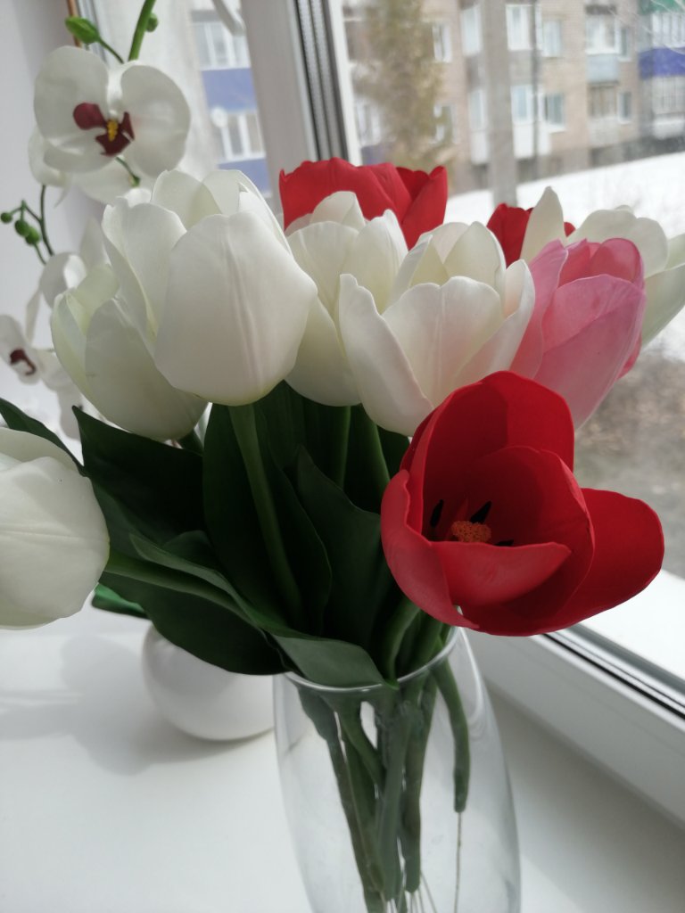 А ещё меня захватила безмерная любовь к цветам из фоамирана. И расцвел у меня букетик из тюльпанов