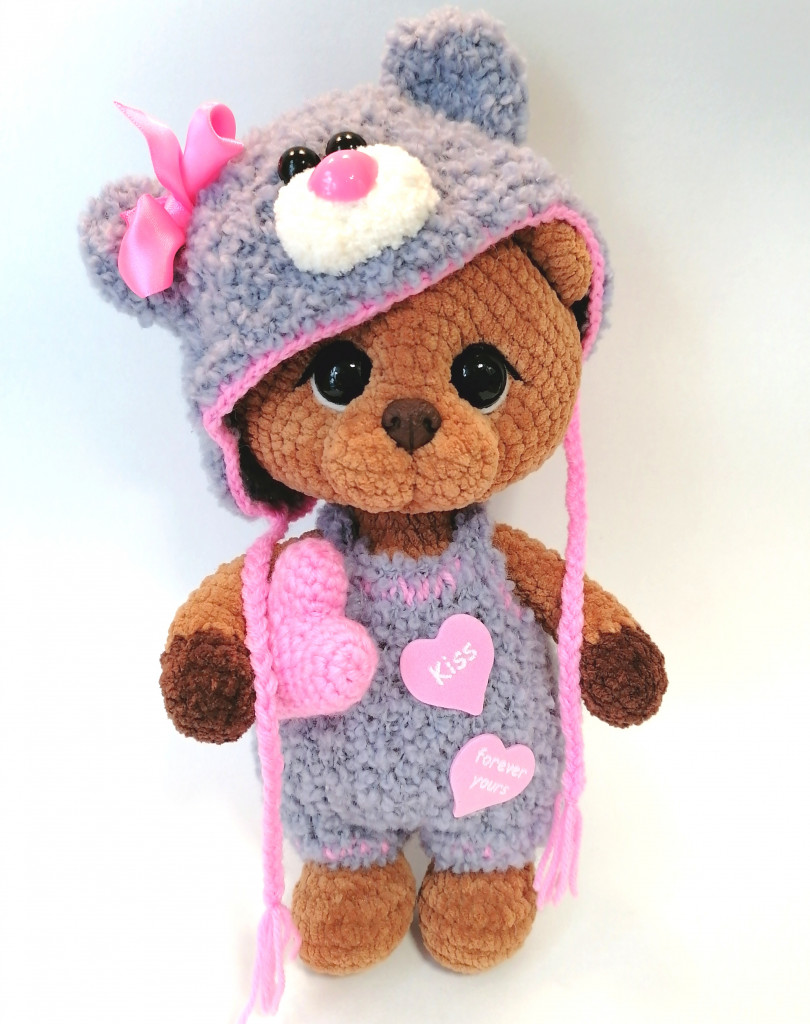@Галина Асташова Связан из бобинного мохера, крючок кловер амур 1.25, шплинтовое крепление, ростом 16 см. Галечка, спасибо за возможность связать этого милягу!