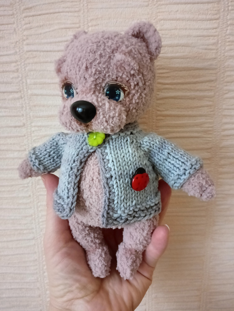Мишка спицами, автор мк Татьяна Сидоренко. Связан из нити гималая беби софт, рост 18 см, голова на шплинте