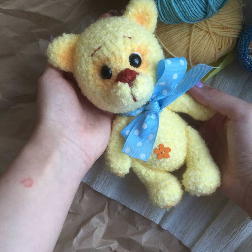 Сама не знаю, кого связала. Мальчик или девочка, пока не определилась. Снова пряжа Минк, шплинты, металлический гранулят.МК My good bears