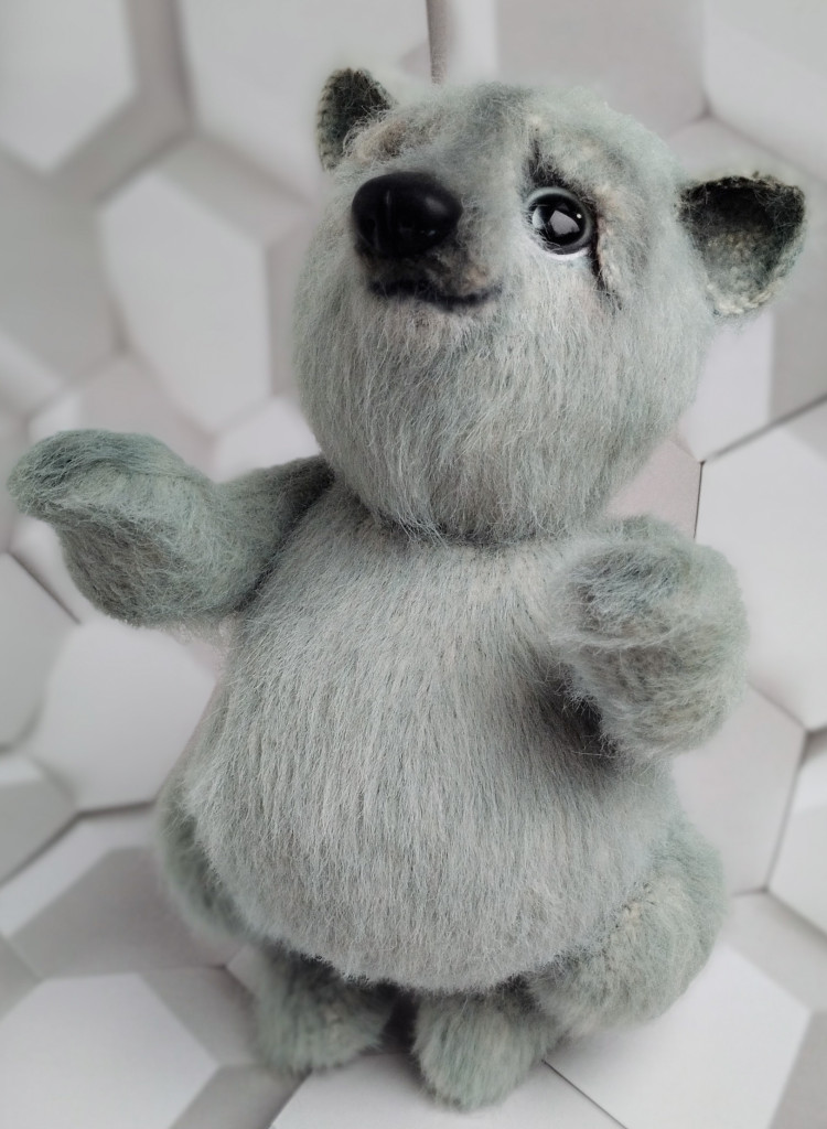 @Галина Асташова Связан из бобинного мохера, крючок кловер амур 1.25, шплинтовое крепление, ростом 16 см. Галечка, спасибо за возможность связать этого милягу!
