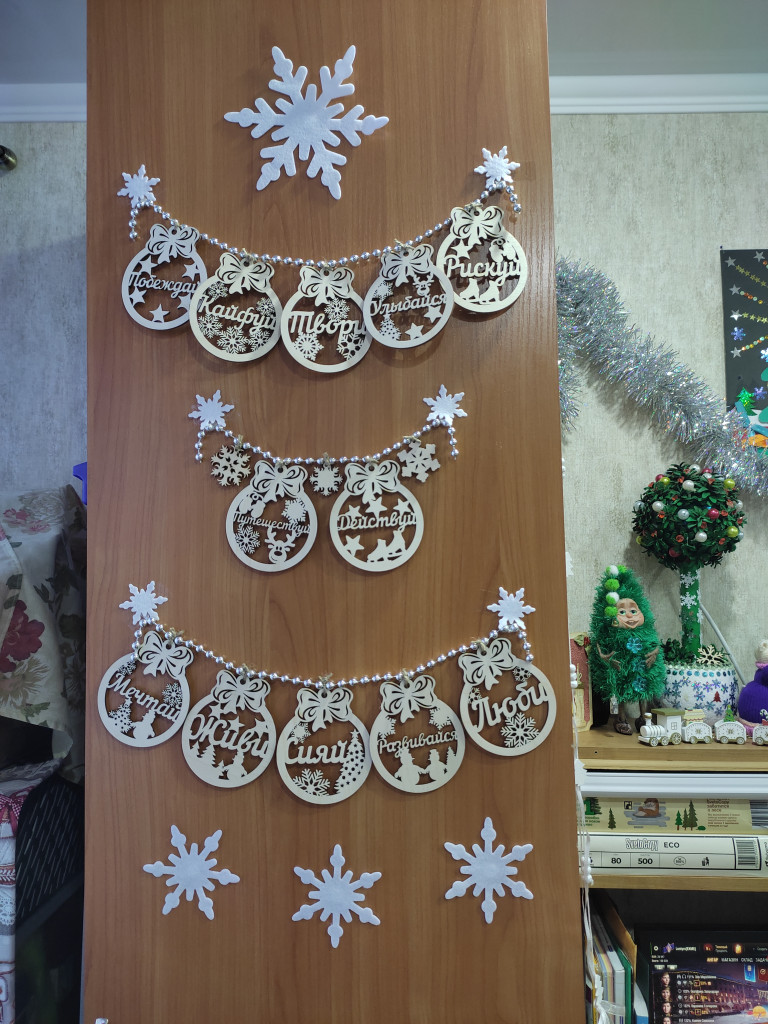 Убрала все в коробку с новогодними штуками. У нас там много интересного хранится. Вот например можно найти пожелания всей нашей огромной семьи аж с 2011 года. а семья у нас большая, нас у мамы четверо и все уже своими семьями пообзаводились и внуков ей нарожали, аж 9 человек. В этом году тоже напишем, а прошлогодние прочитаем. Ну и немного украшений нашей квартирки. Ёлка с моими игрушками, дождики с фотографиями