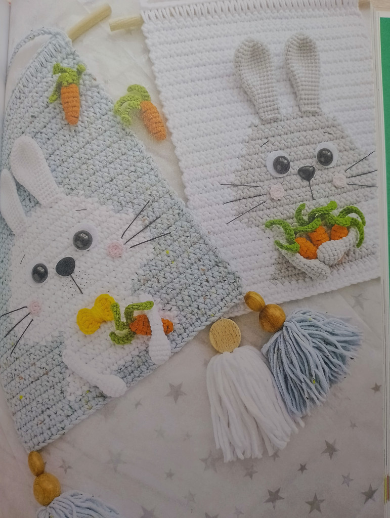 К украшалкам относятся панно, оно придаёт уют детской комнате, его можно рассматривать перед сном, а героя панно вообще считать своим другом. Панно из книги "Вязанные панно и игрушки крючком" Татьяны Поддубской. Зайчика на панно я начала вязать в марафоне, не успела только оформить и с удовольствием узнала, что он есть в книге