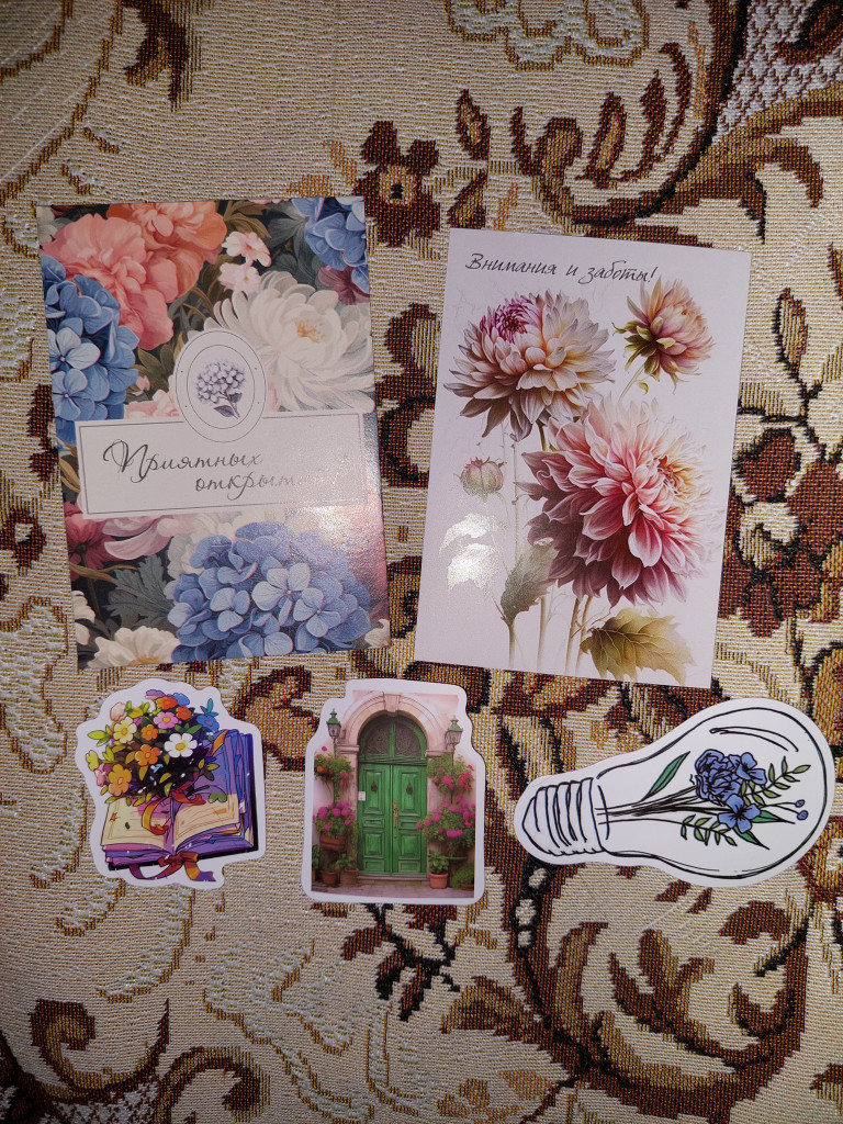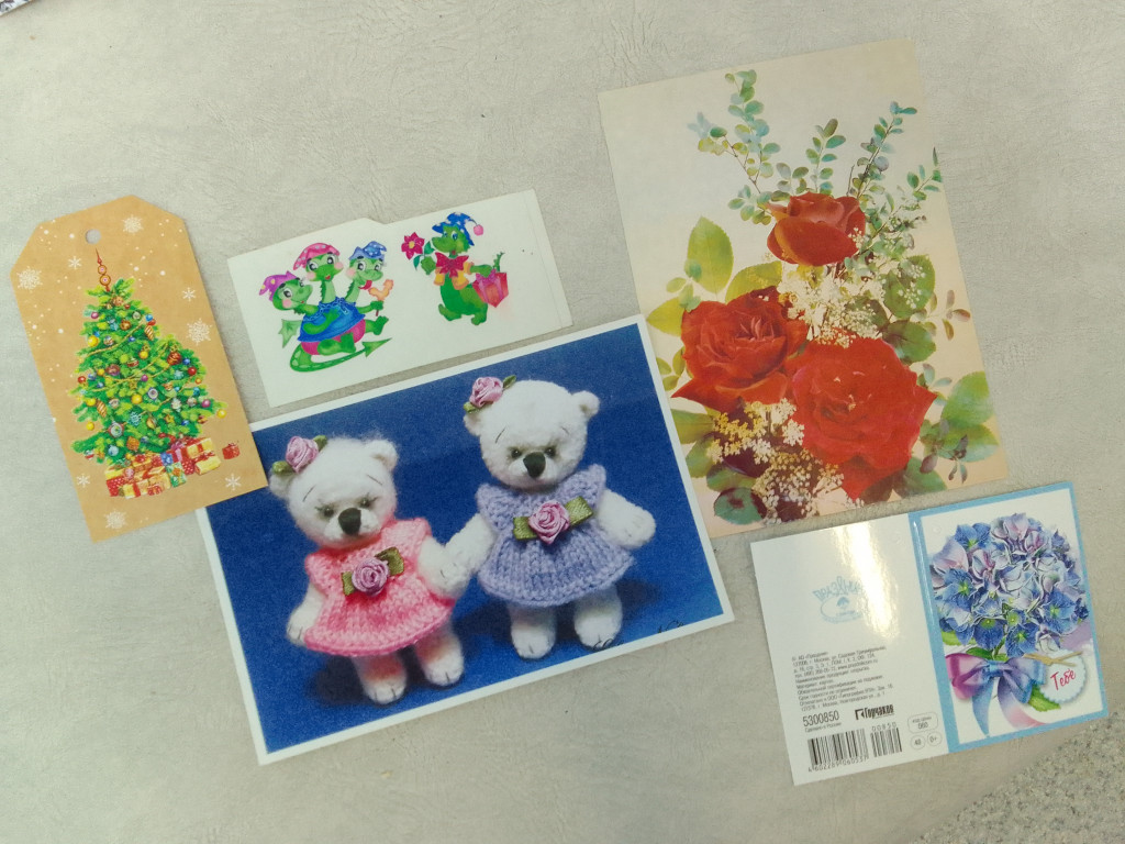 Маленькие открытки и наклеечки.