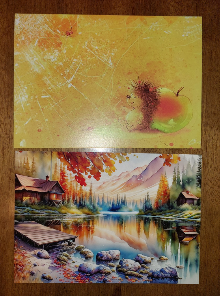 А ещё сюрпризные открытки в мою коллекцию с ёжиком и пейзажем. :greeting: