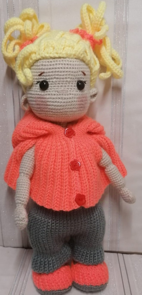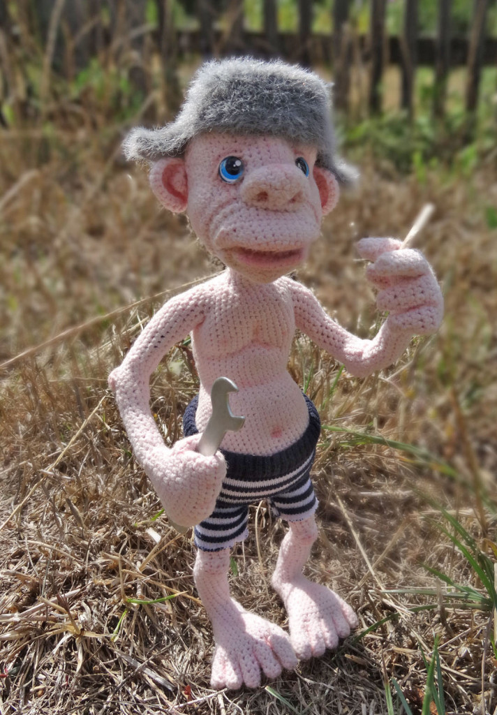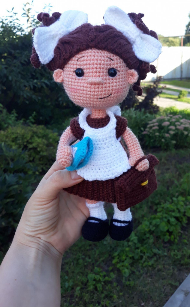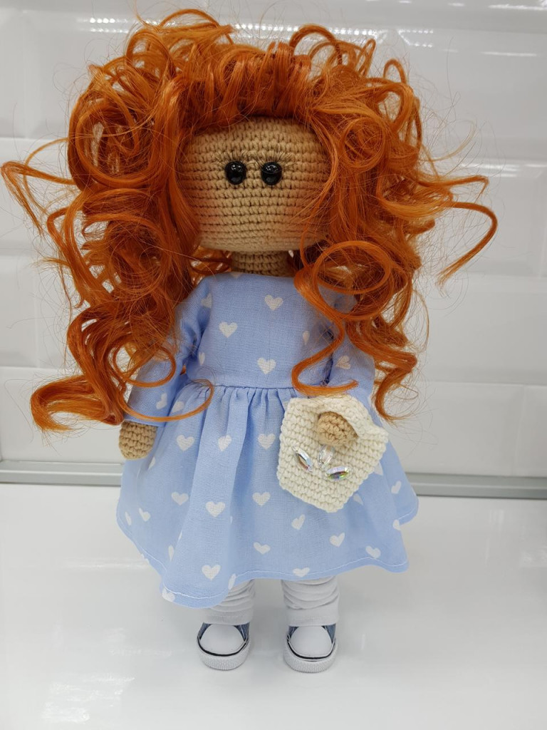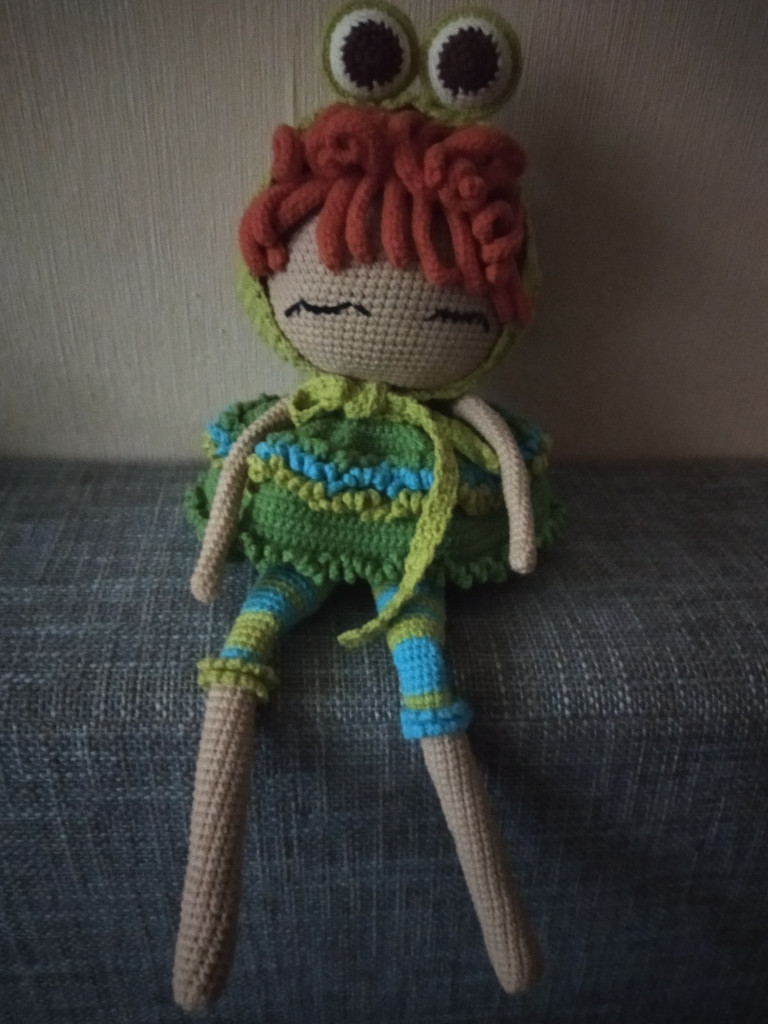 Моя первая кукла по мк Марины Голден. Это просто проба из отвратительный ниток что нашлись дома. Распускать было жалко поэтому доделала. Живую была красивее😉