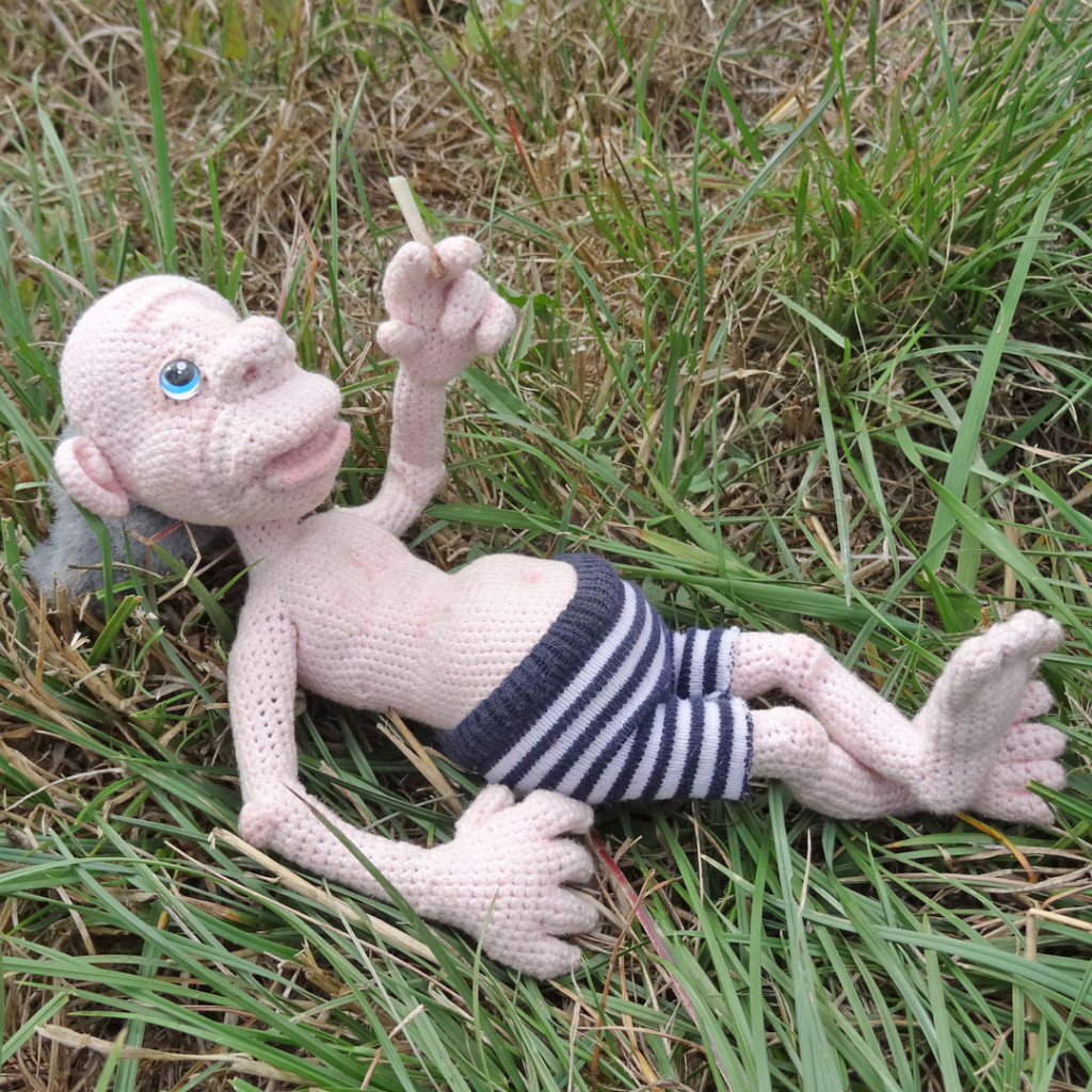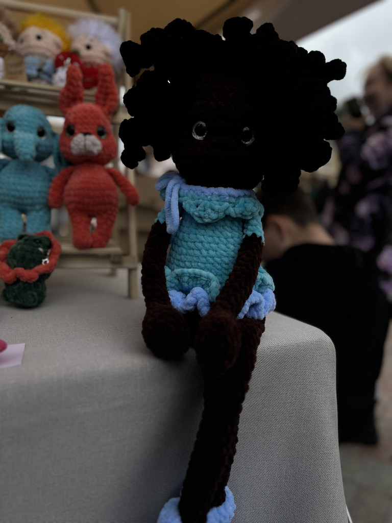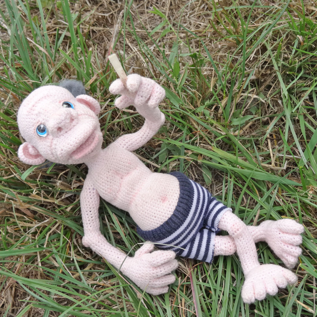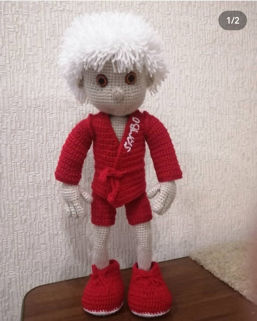 Моя первая кукла по мк Марины Голден. Это просто проба из отвратительный ниток что нашлись дома. Распускать было жалко поэтому доделала. Живую была красивее😉