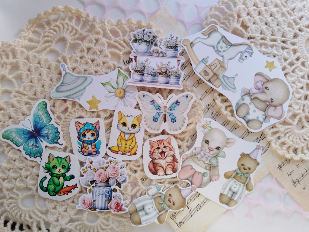 И конечно много сюрпризных открыток, украшалочек, наклеек