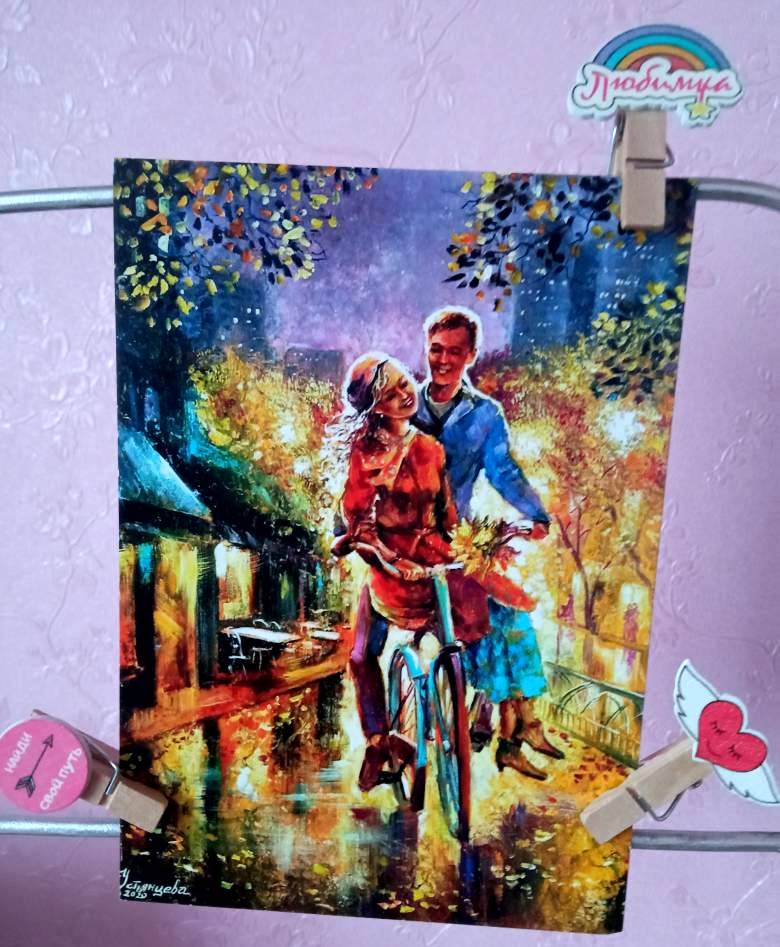 с супругом мы начали встречаться с 4 класса. Ии все эти детские годы он приезжал каждый вечер ко мне на велосипеде. Мы много катались и по селу, и по полям, и по лесам... в классе 9 он купил мотоцикл.. и потом мы уже рассекали на нашей зеленой "пчелке". Но воспоминания о велосипеде - это воспоминание о детстве. Сейчас, когда вспоминаем, смеемся. Получив открыточку, я побежала к нему - а он говорит, где взяла наш портрет