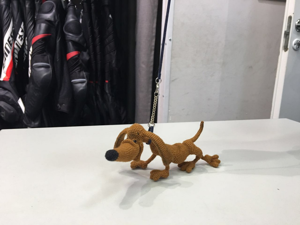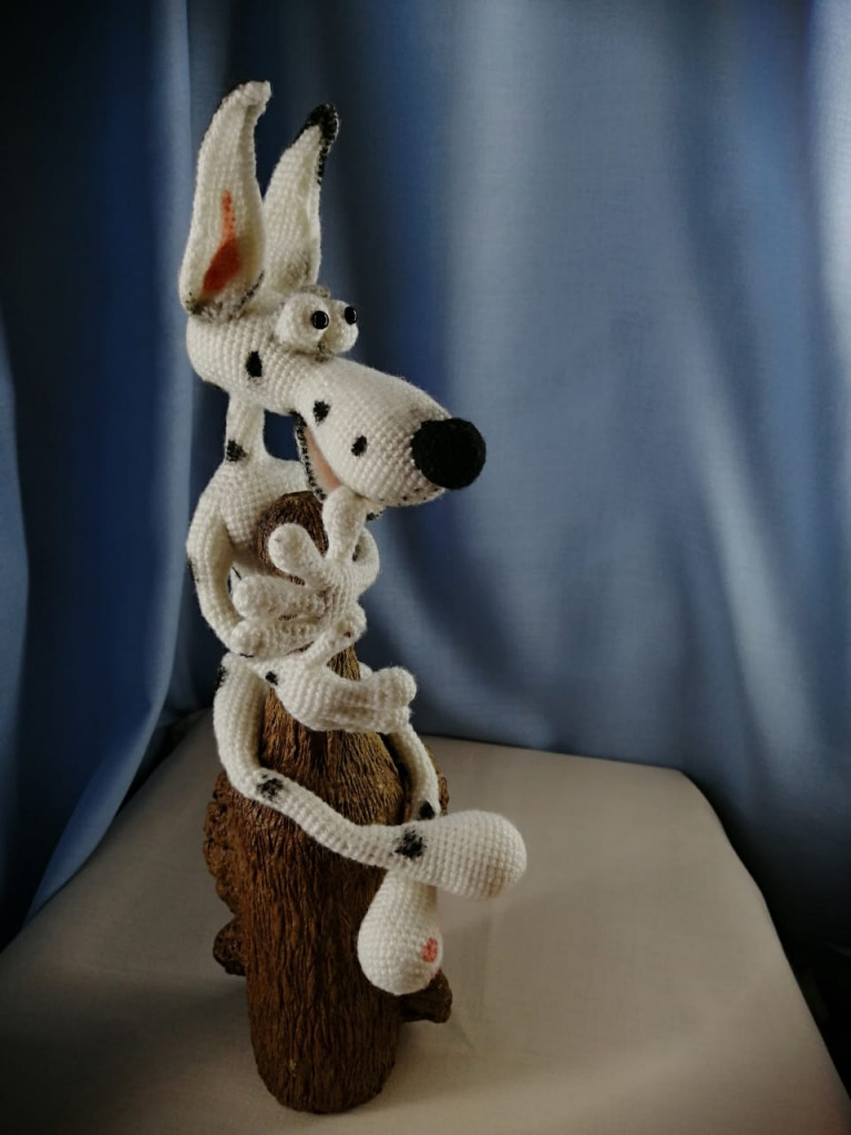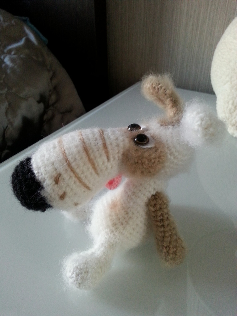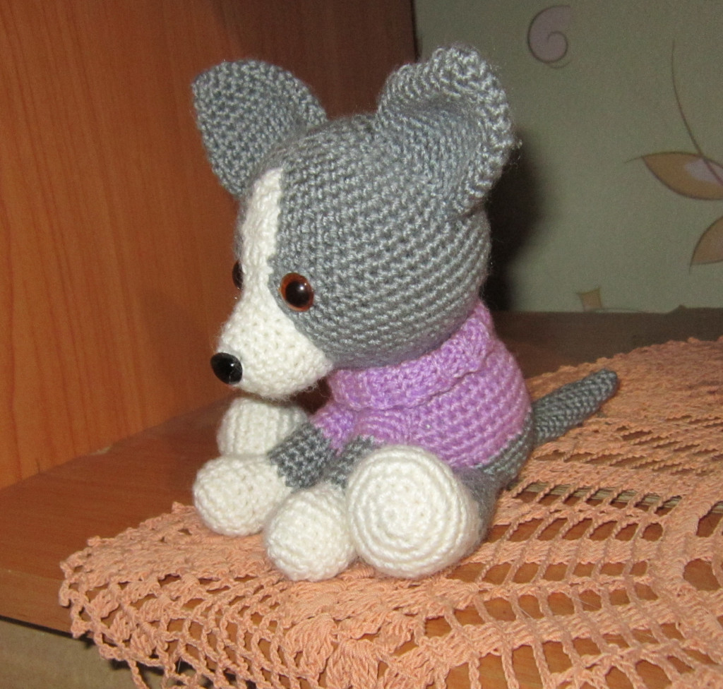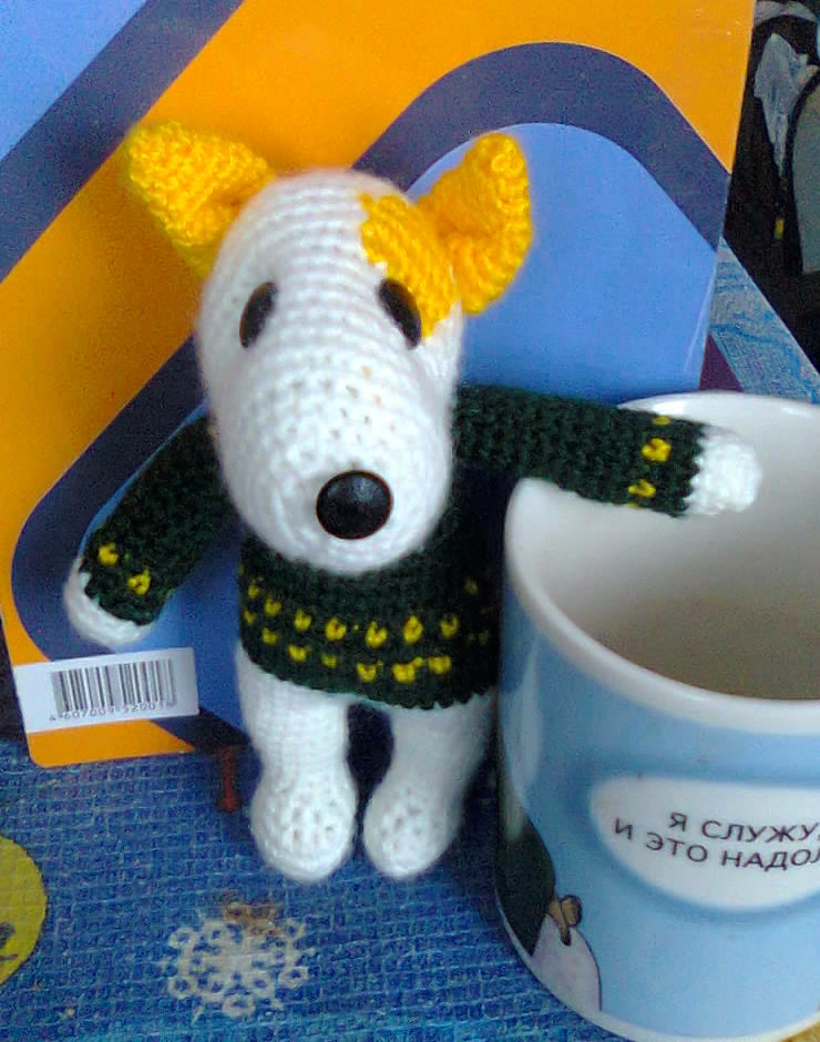 Связан по МК Галины Асташевой "Пес Лаки". Из числа первых моих игрушек. Вязала давно, и уже не помню из чего.