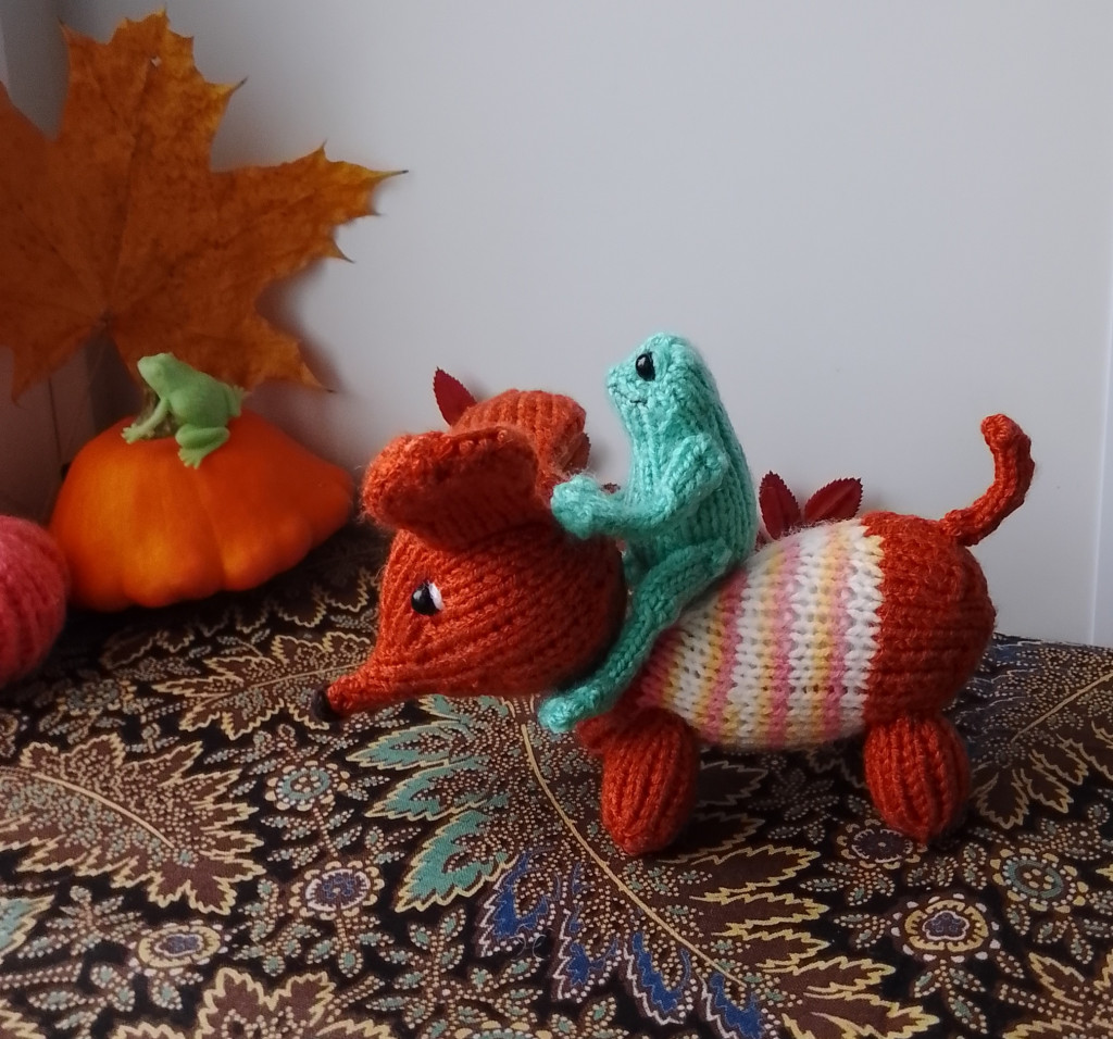 Я связала милую "собачку Дашку" по МК ОЛЬГИ Макаровой. С ней подружился и катается, как на лошадке, милый маленький лягушонок Квака ( МК Натальи Голубевой)