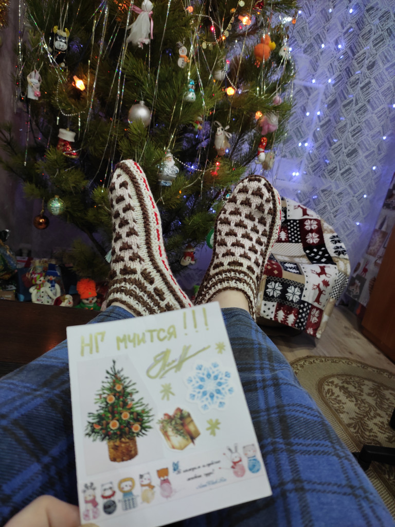 Ну и носки! Не новые, а празднично-зимние :-)) они просто очень толстые и тёплые. Подруга их мне подарила специально для английской зимы и сырых квартир, в одной из которых мы жили в Лондоне :-)) Сейчас у нас тепло и сухо дома и мы не в Лондоне, а носки, как символ зимы со мной!