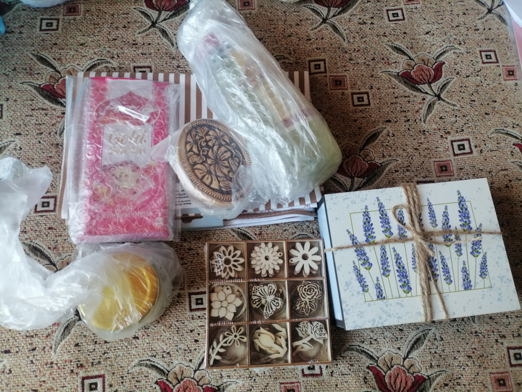 ой чуть не забыла-там были еще льняные полотенчики и открыточка