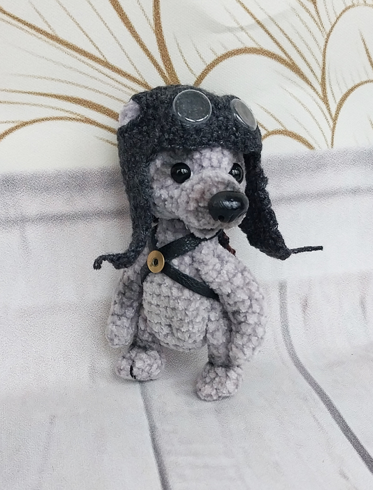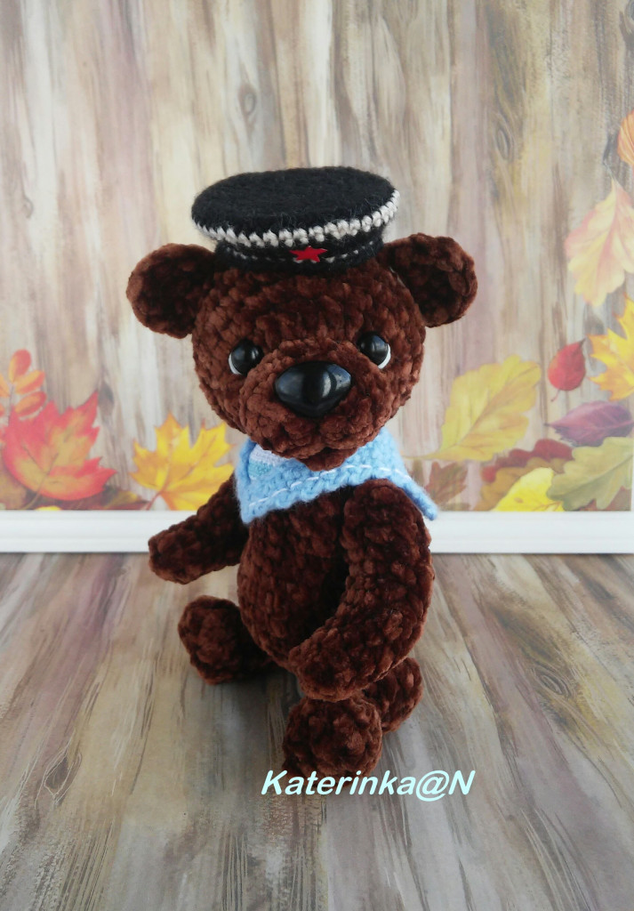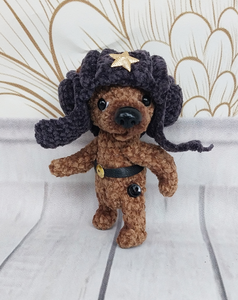 Михасик, спасибо Светлане Комаровой. Связан крючком из пряжи аделия велюр, на шплинтах. Размер стоя - 16см, сидя - 14см.
