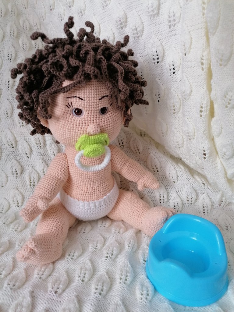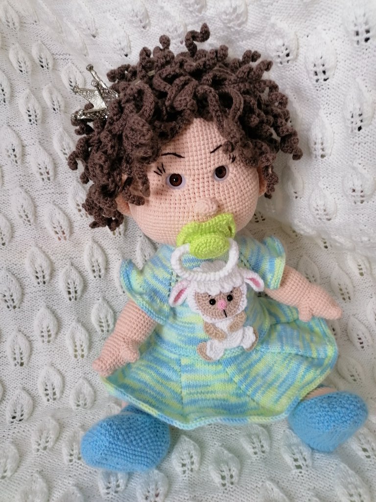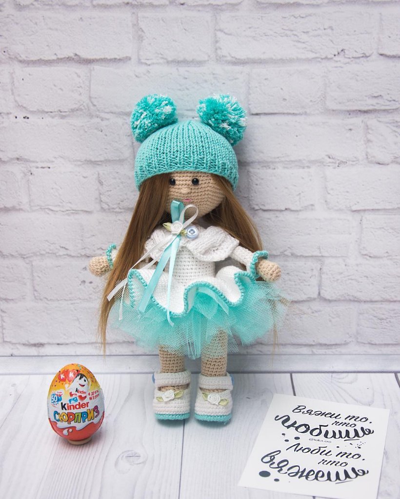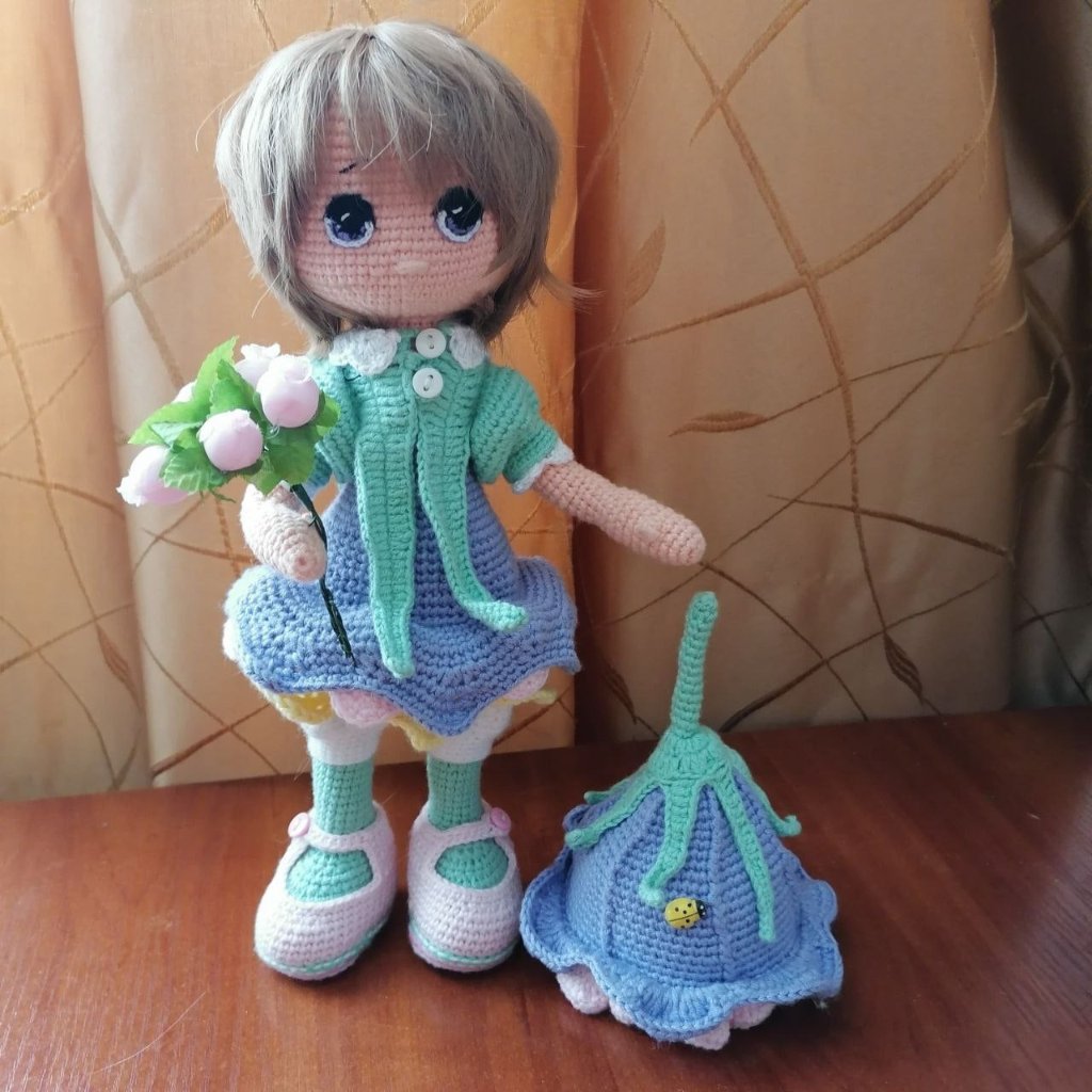 Куколка связана крючком из пряжи Джинс.Рост 25 см
