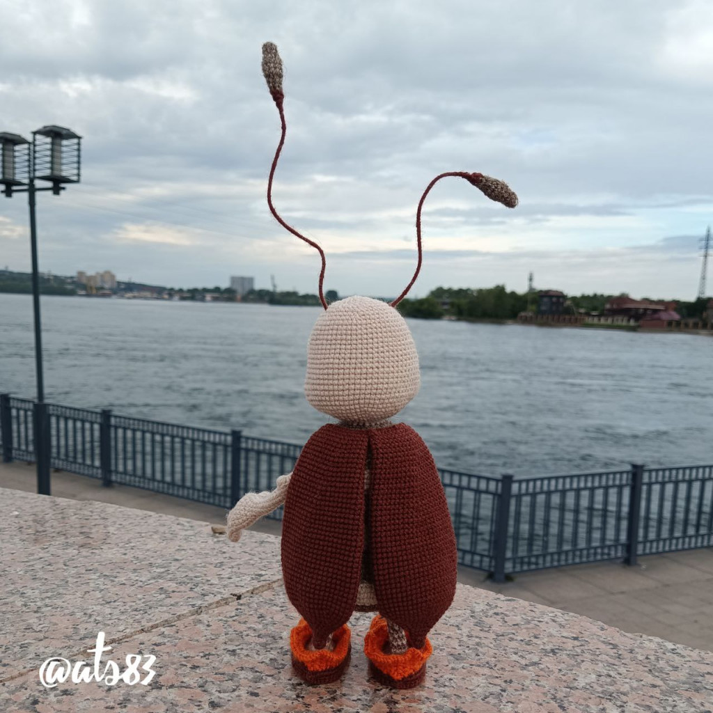 Хлопок разный, крючок 0.9, каркас, глаза - смола.