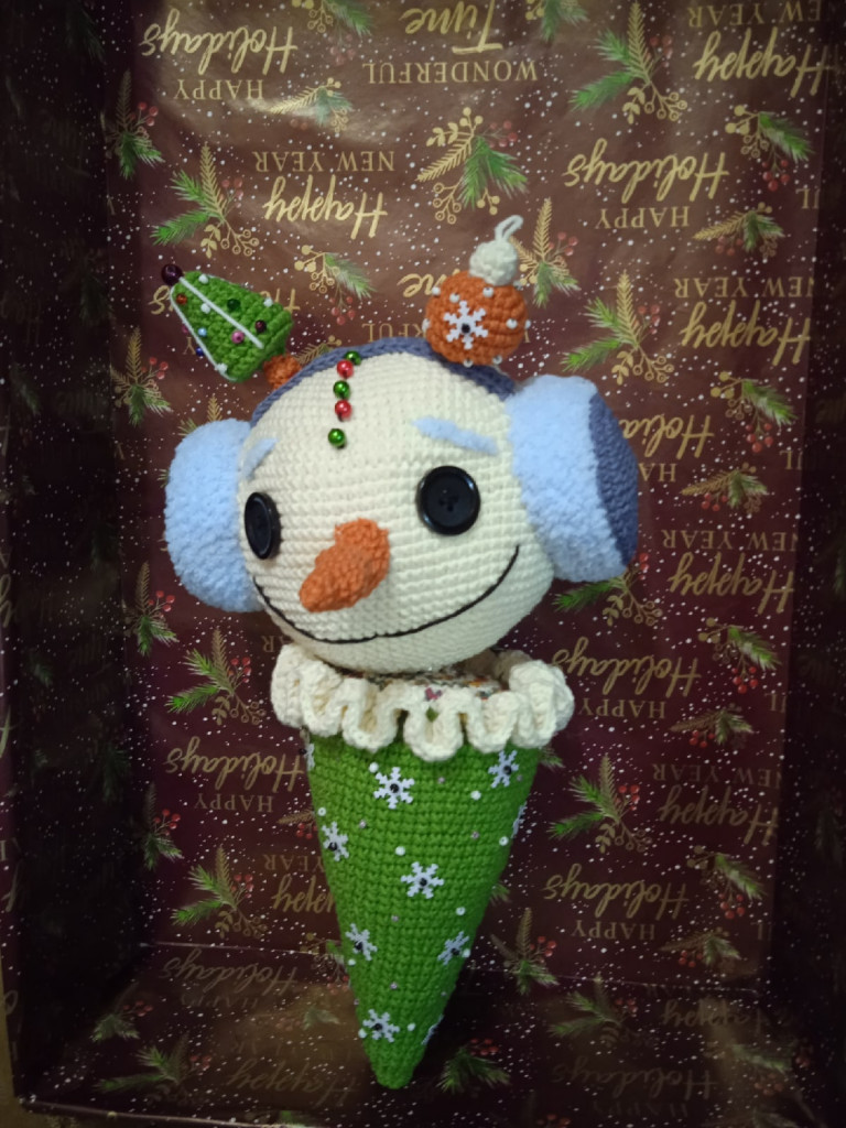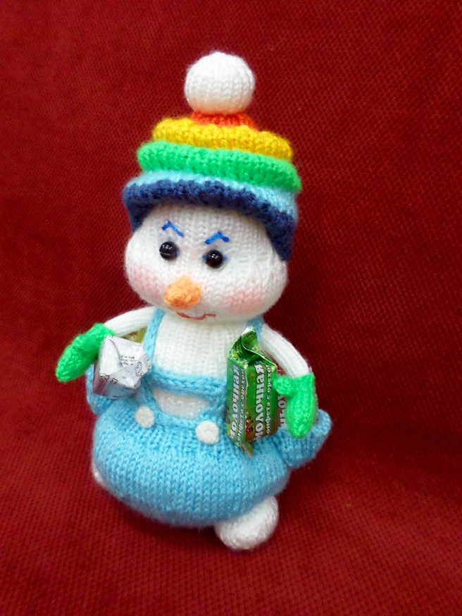 Вязала снеговика в подарок коллеге на Новый год по МК Анны Загривной.