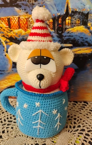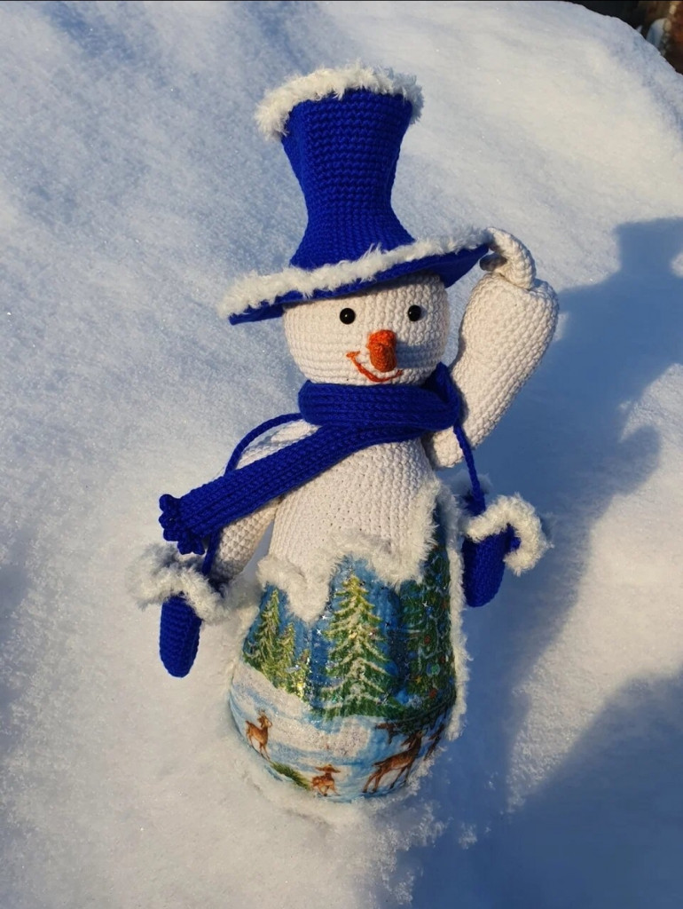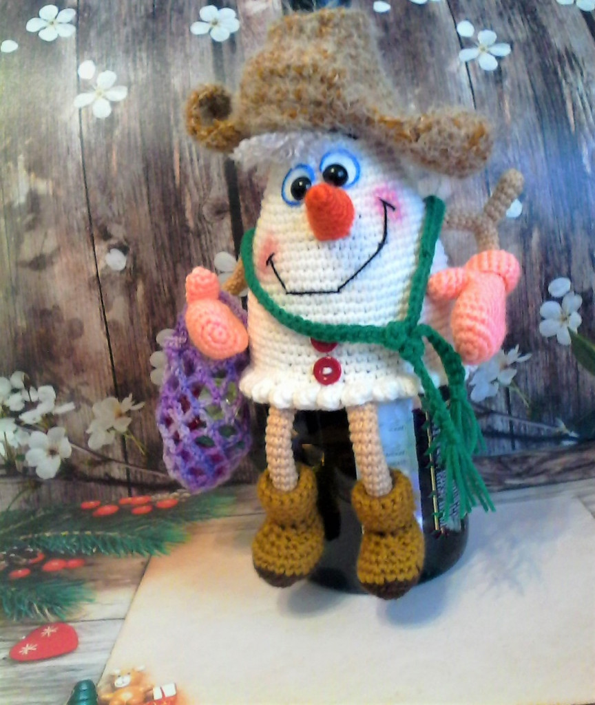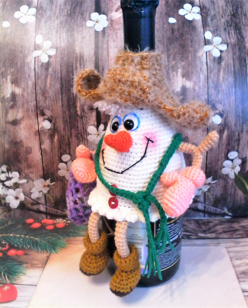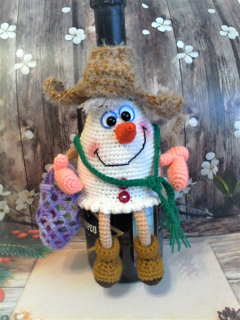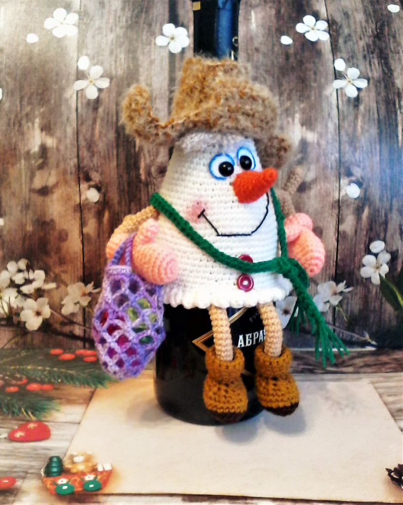 Снеговик, чехол на бутылку по МК Елены Лукмановой.