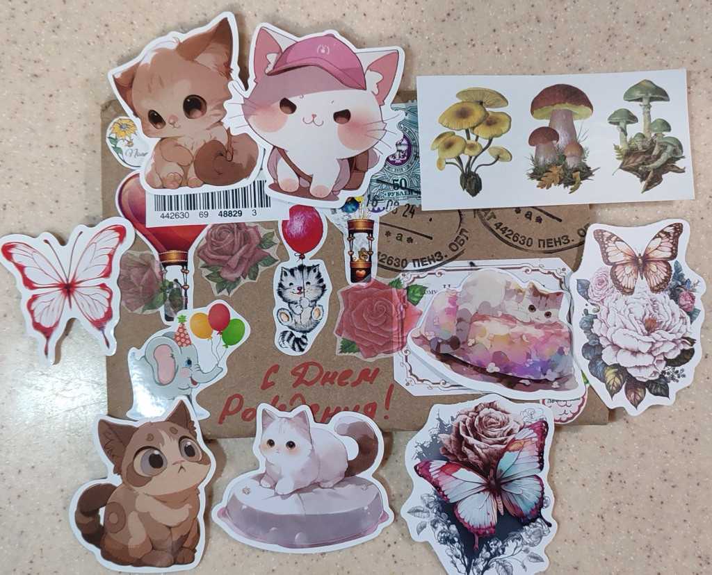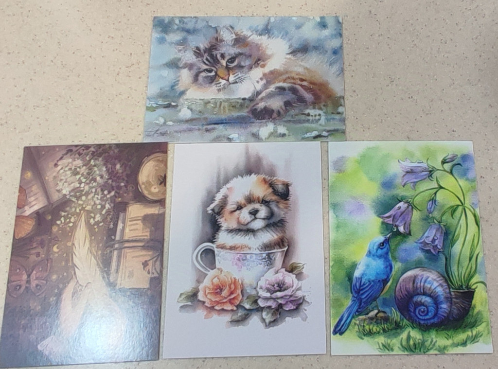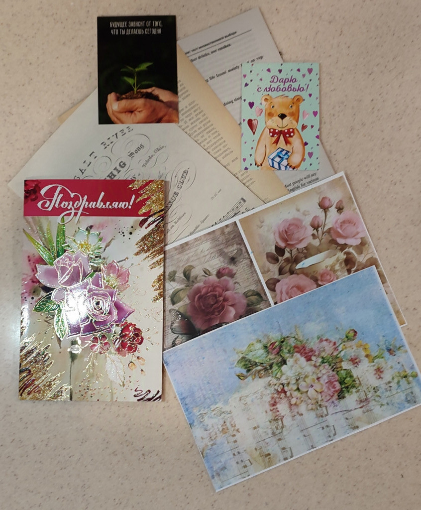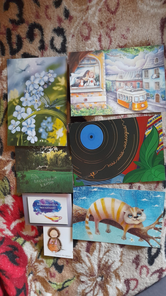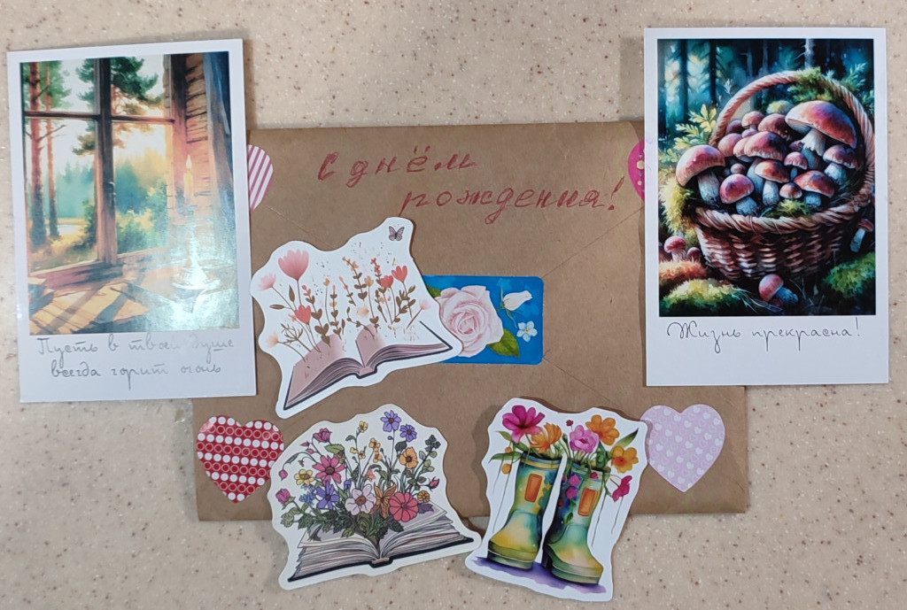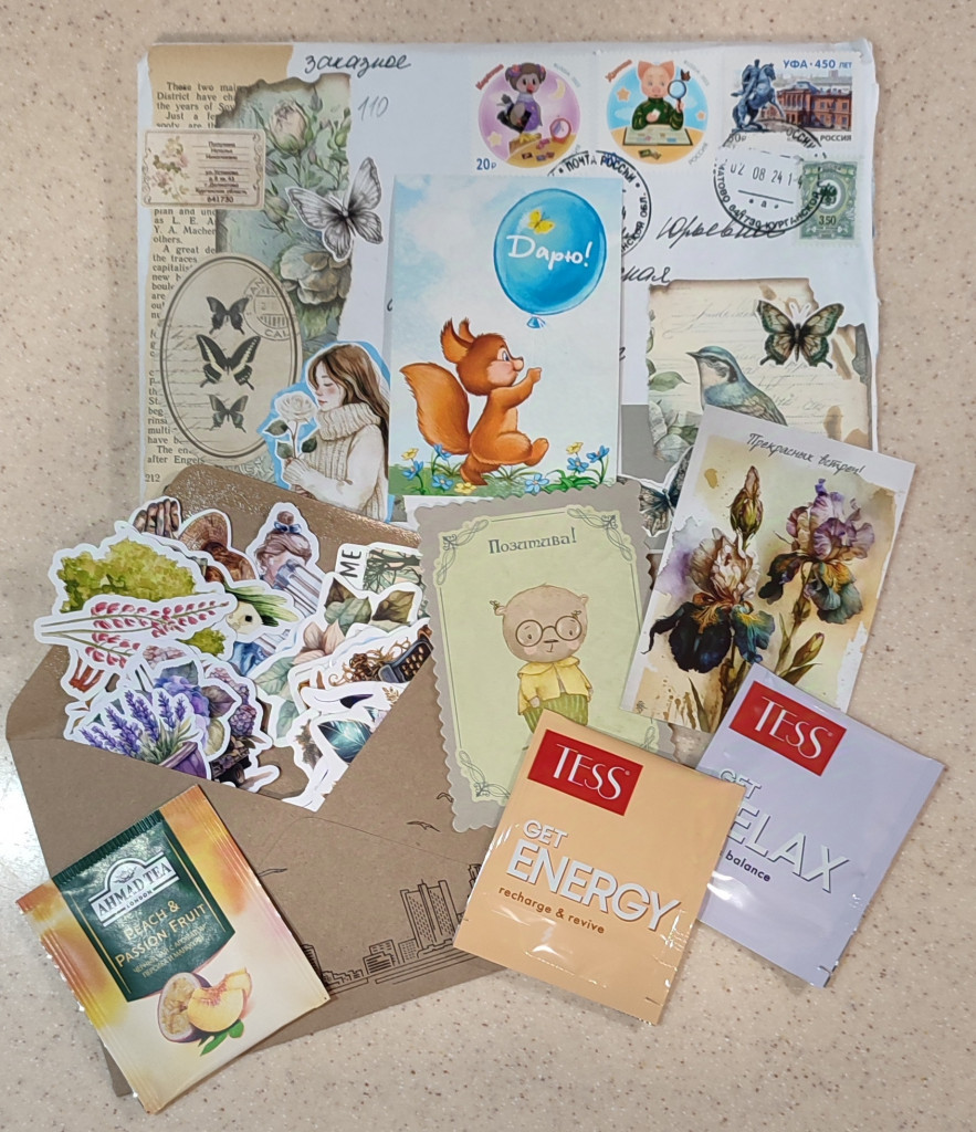 Конверты, которые от вас пришли, самостоятельное произведение искусства, а уж содержимое....слов нет, лишь чувства..