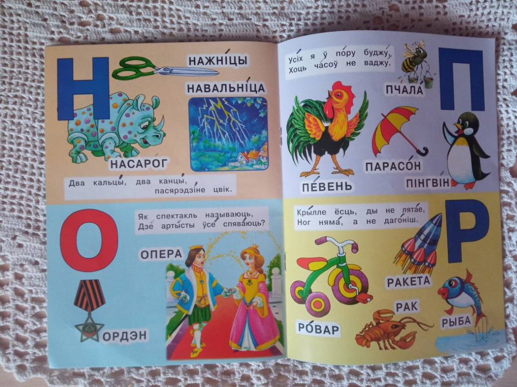 Тетрадочка с грифончиком, картошечка, тушеночка - эти подарочки перекочевали в машину)) а вот книжечка с алфавитом - это что-то! ее забрала бабушка, будет с пра-внучкой изучать вместе белорусский язык