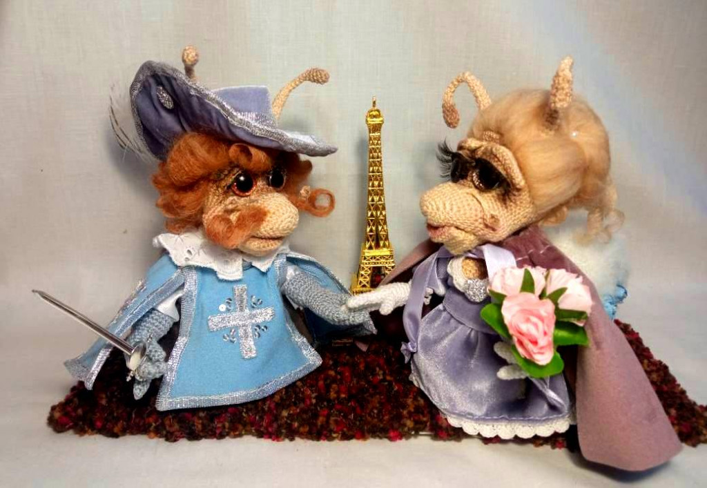Ко мне прилетели Д’Артаньян и его возлюбленная Констанция С собой привезли очень много всего нужного и красивого Ну и разумеется без вкусного не обошлось Я очень очень рада была получить такой шикарный подарок, настолько тонкая работа, как все продумано это просто восторг на фото не очень видно но Жанна не только связала потрясающих улиточек но и придумала для них специальную подставку чтобы они не разбежались по разным углам полки)))))))